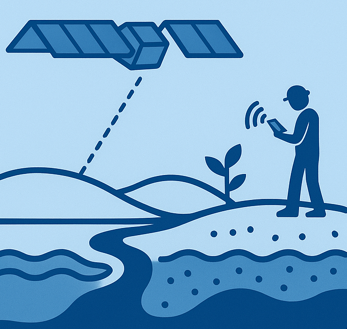 Conceptual model of integrating satellite remote sensing with field observations. Base diagram created with AI DALL-E